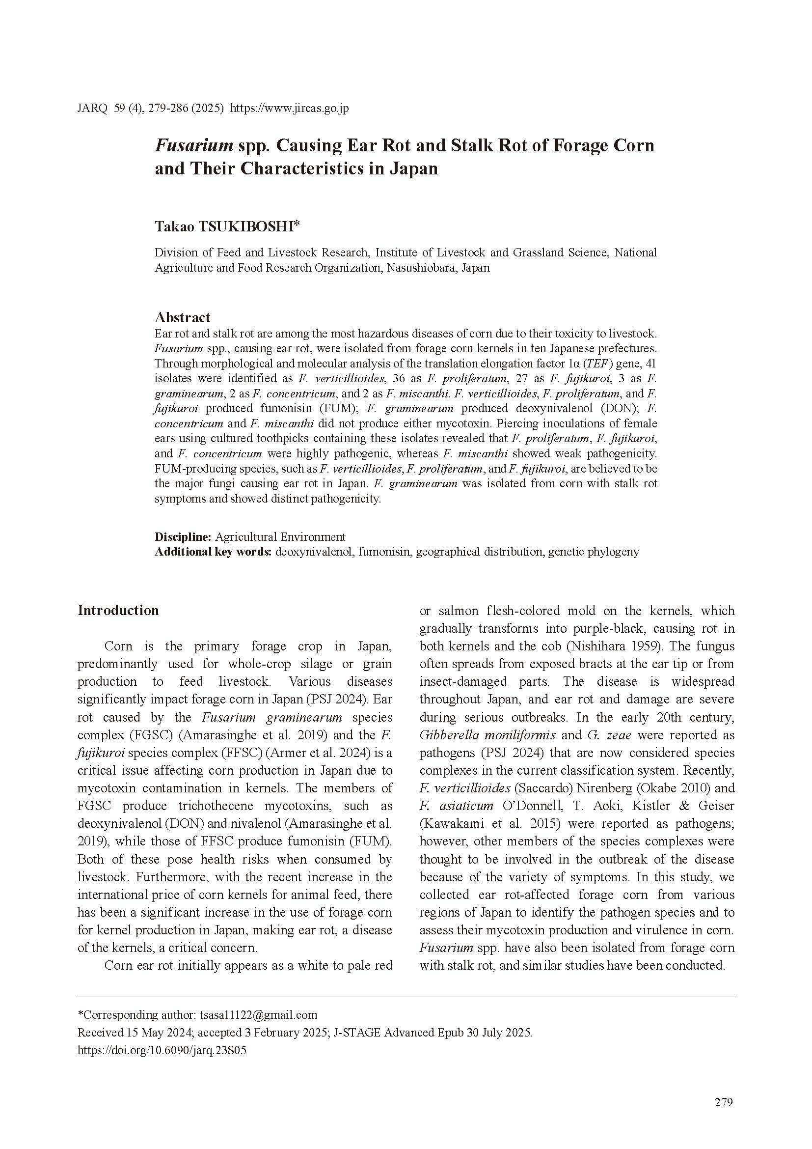 Fusarium spp. Causing Ear Rot and Stalk Rot of Forage Corn and Their Characteristics in Japan
