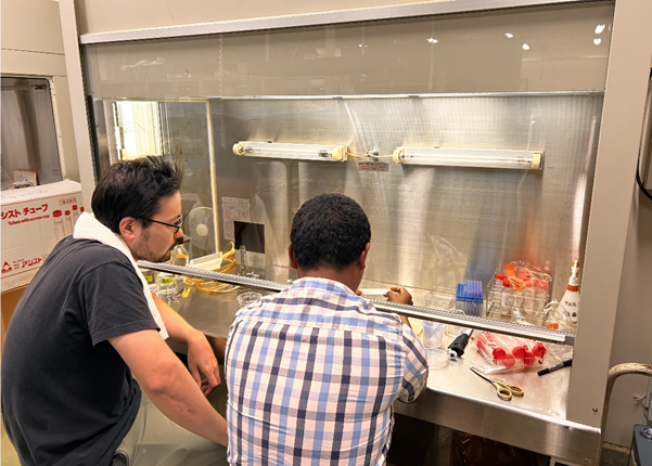 He learned techniques such as embryo rescue methods to overcome interspecific crossing barriers and chromosome doubling methods to improve fertility, and he also took part in various research activities including culture management and soil gas emission experiments, through which he acquired practical knowledge and skills.
