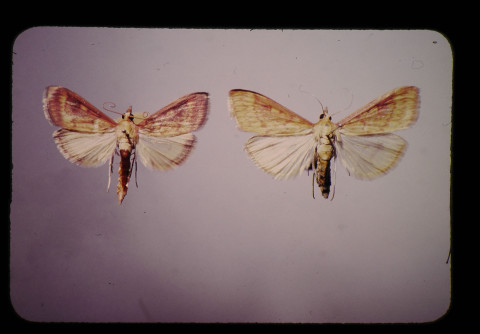 モロコシマダラメイガ(Lesser comnstalk borer、 Elasmopaipus lignosellus Zeller)はアメリカ大陸特有の畑土壌害虫で、干ばつ条件下で種々の作物に大被害を及ぼす。卵は地表直下に産付され、幼虫は地表直下で作物の茎内に食入して加害することが知られている…熱帯油糧資源