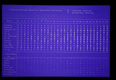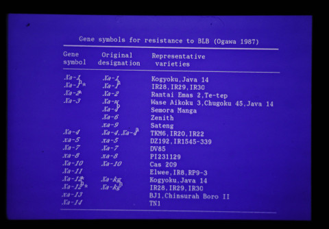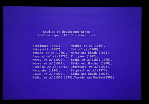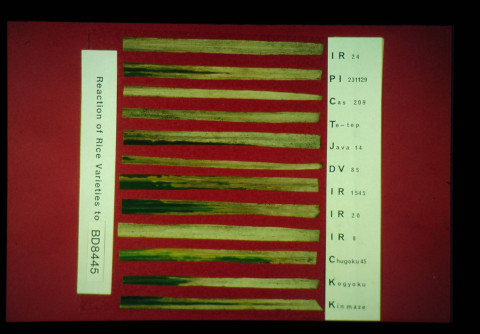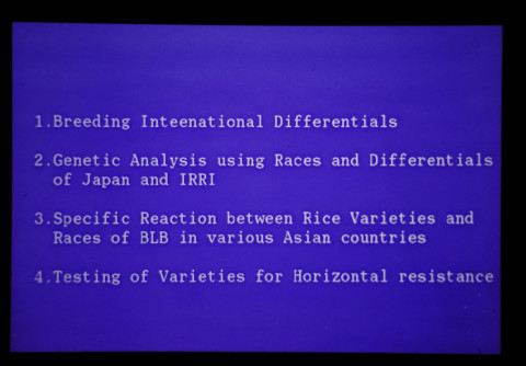 1982年から農水省と国際稲研究所(IRRI)の間で熱研を窓口として、稲白葉枯病抵抗性に関する共同研究が開始され、1984年から1989年の間は、日本政府の特別拠出金による日本・IRRI共同研究プロジェクト「灌漑水田の少資材型稲作技術の開発」の中で実施され、その後病原細菌に関する研究は熱研の経常研究として実施した。