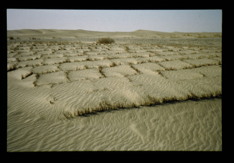 乾燥地における砂漠化の進行を阻止するためには、乾燥した裸地から農地に急変する限界地域の微気象改良が重要である。ここでは、中国トルファン地域の夏季の高温・乾燥・強風条件下において、複数列の数樹種の混交防風林帯による耕地内の微気象改良・気象緩和効果を明らかにするとともに、作物の生育促進、収量増加などの効果も明らかにする。