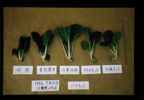 栽培法の改善及び生理生態に関する研究はこれまで主として旧作物栽培研究室(現作物導入栽培研究室)が野菜と桑を対象に実施してきたが、このほかに旧作物導入馴化研究室の暖地型マメ科牧草の定着化のための研究、作物育種研究室のサトウキビの生育特性や生理生態の研究、ステビアの栽培試験などが行われてきた。野菜については、亜熱帯の夏期の野菜、特に温帯野菜の生産安定のため、基礎研究と夏野菜の種類拡大を重点的に取り上げてきた。まず、前述の導入シカクマメから育成された新品種「ウリズン」の生理生態的特性を解明して栽培法を確立した。次いで夏期の高温、強日射、台風などの気象環境を緩和し、多発する害虫の侵入を防止して生産を安定させるために、通気性資材を供試し、その簡易被覆下の局地気象の解明を行っている。このほか、土壌肥沃度向上のために、微量必須元素の動態、熱帯マメ科植物等の窒素固定力向上などについての研究も実施中である。桑については、優良品種・系統としてシマグワ3系統、温帯桑1品種を選定し、その生理生態的特性や樹体内養分の経時的推移から収穫適期を明らかにした。さらに、仕立て・収穫法を確立し、適正栽植密度をも明らかにした。なお、栽培法の改善に関する研究は前述の研究に加えて平成元年度から新しく熱帯果樹とパインアップルが加わり、暖地型牧草についても再び取り上げることとなった。