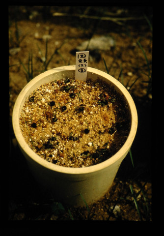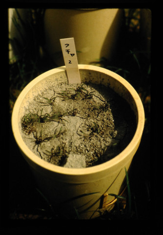 熱帯牧草の適草種の選定において、イネ科牧草では、ギニアグラスが現在南西諸島で広く栽培されているローズグラスに勝り、中でもナツユタカの3年間の総乾物収量が供試草種の中で最も高かった。一方、マメ科草種では、乾物収量、粗蛋白含有率、初期生長性、病虫害の有無などからみてセントロシーマが適草種であると結論された。上記草種の播種技術については、種子をシードペレット化することにより干魃条件下でも発芽率が高まり、さらに、このペレット中に各種の肥料成分を添加し生育を促進することも可能であることを明らかにした。また、播種法に関しては、ペレットを土壌表面に埋め込むことが必要であることを確認した。