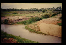 農地整備公団実証圃場を流れるゴルビ川。雨期で水害があった。