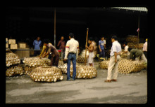 野菜・果樹の販売。手前に見えるのはポメロ。