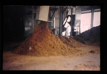 オイルパームを更新する場合は、通常パワーシャベルで木を押し倒し、同時に細切してしまう。数カ月間放置乾燥後燃やし、その後若苗を植える。このため、廃材は全く有効に利用されていない。