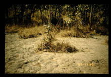 カドナ地方の乾燥地帯。ハードパンの上に20cm程の深さの表土があるが、根が浅く、植物の生育が悪い。樹木は4m 程、野草の根系は貧弱である。ナイジェリアにおけるILCA の亜湿潤プログラムのプロジェクトの一つとして、ここに牧草地を造成しようとしていたが、ハードパンにまで根系を拡げる適当な牧草を選定することが求められている。