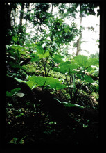 山を開き、傾斜地にサトイモを植えつけている。アグロフォレストリーの一つ。