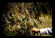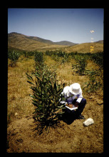 森林試験所の半乾燥試験地で植林の調査を行っている石原情報官。