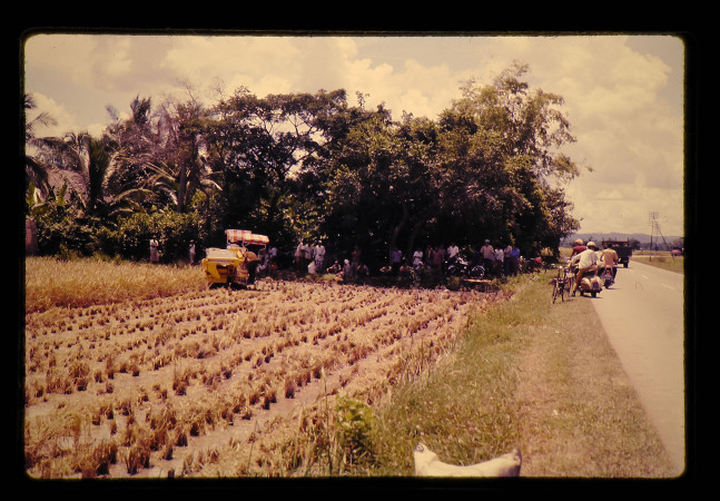 日本製コンバインによる収穫状況 = Harvesting By Japanese Head-feeding Combine