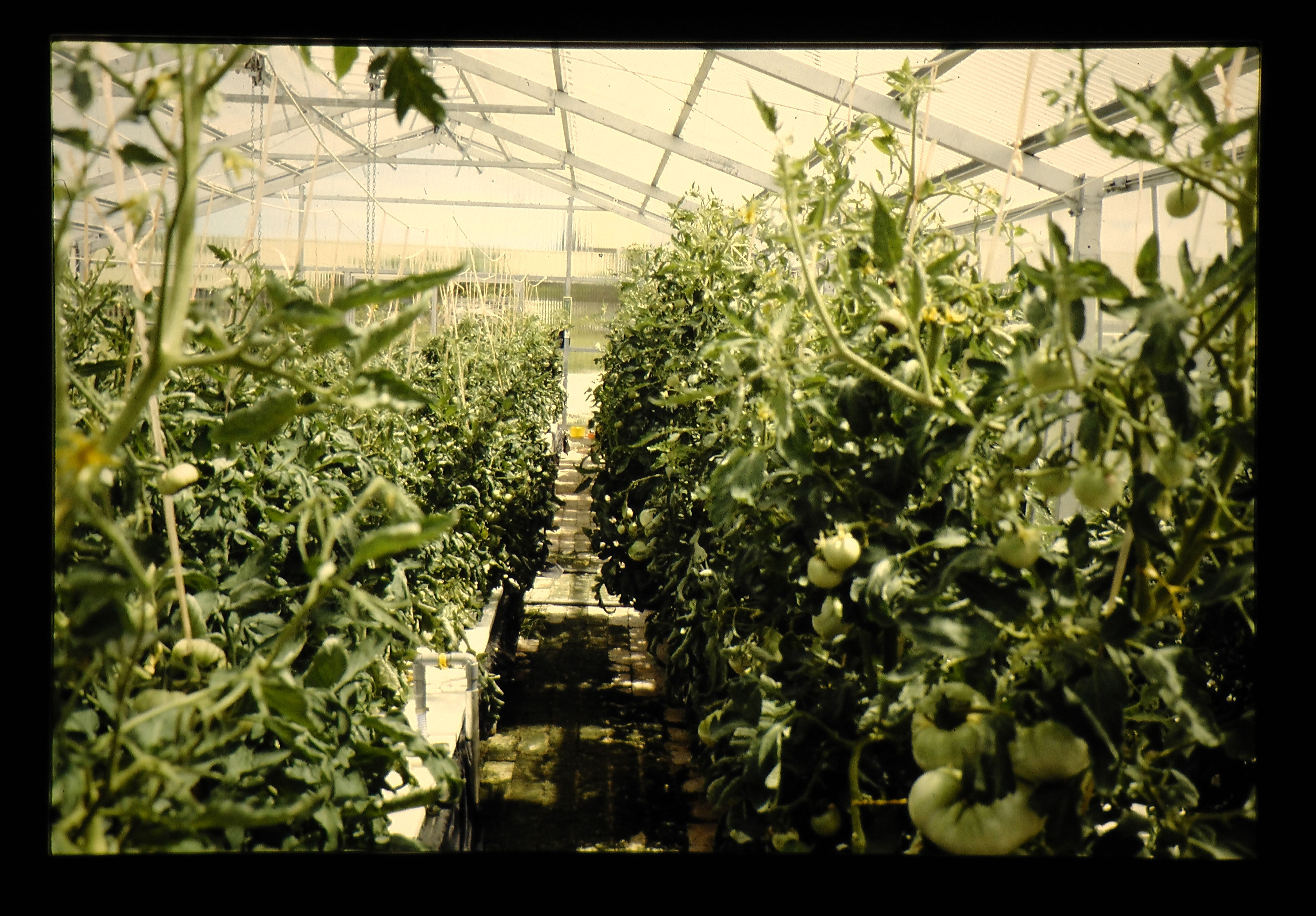MACFARMの新和式水耕施設で栽培中のトマト = Tomato Plunts Growing By Hydroponic Cultivation Atmacfarm