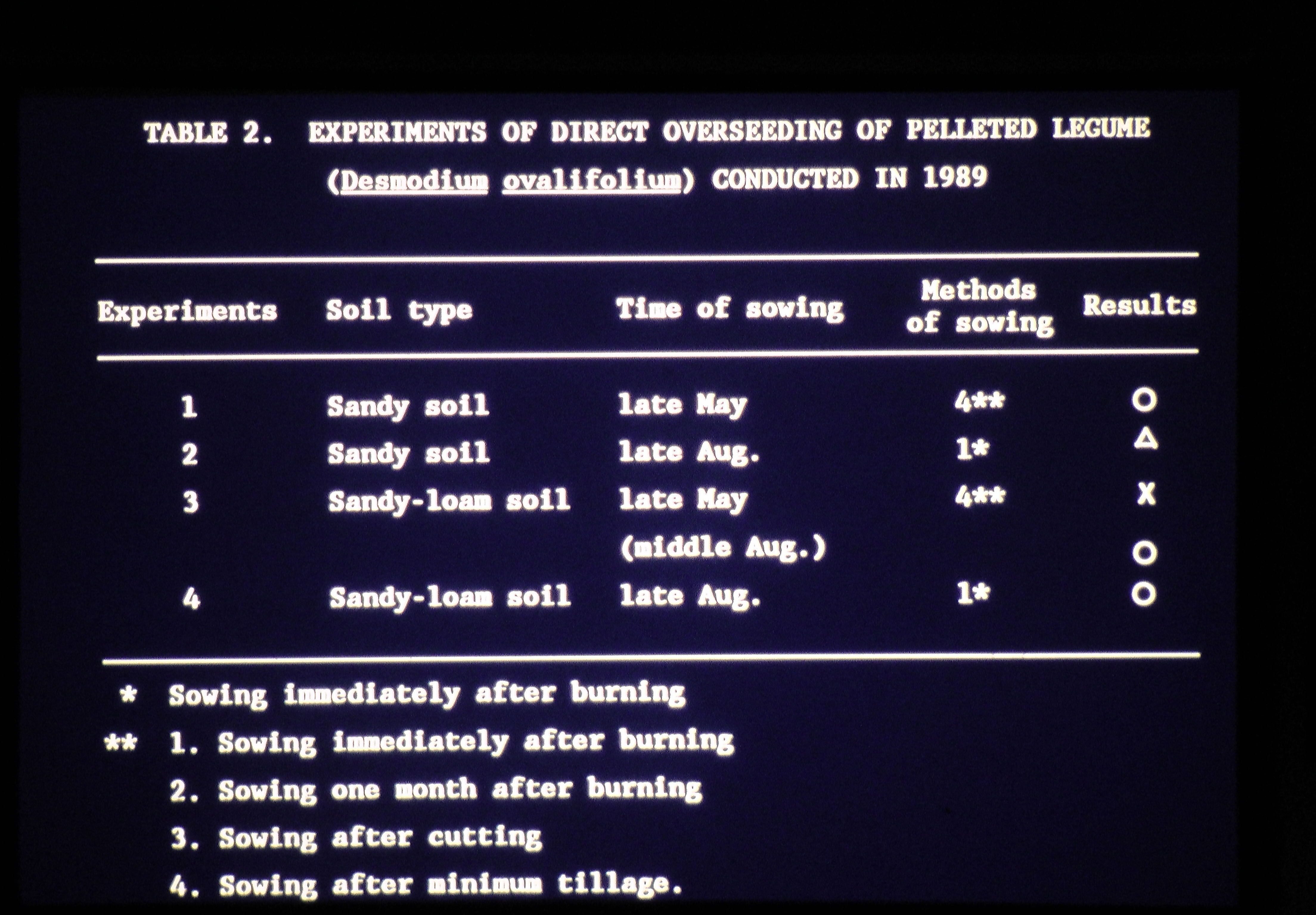 Burning,direct Seeding,sandy Soil,sandy Loam Soil,seeding In 1989