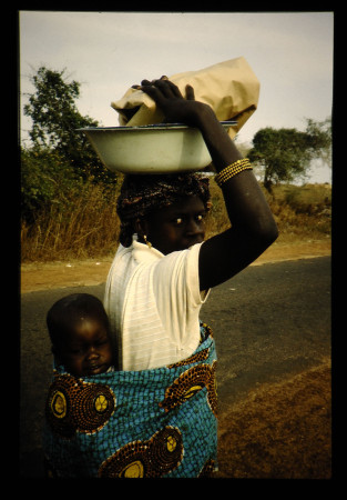 背負うと言っても日本に比較すると、ずいぶん下の方に子供がいるものだ。お尻の上に乗せてる感じ。子供は、みんな人なつこい。だけど、後からオコズカイ。