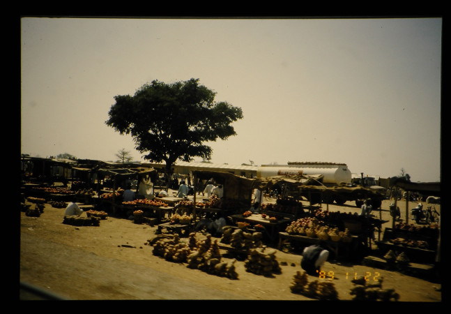 カドナ―ザニアの間にあった、道路沿いのマーケットの風景。附近の農産物の集散地である。