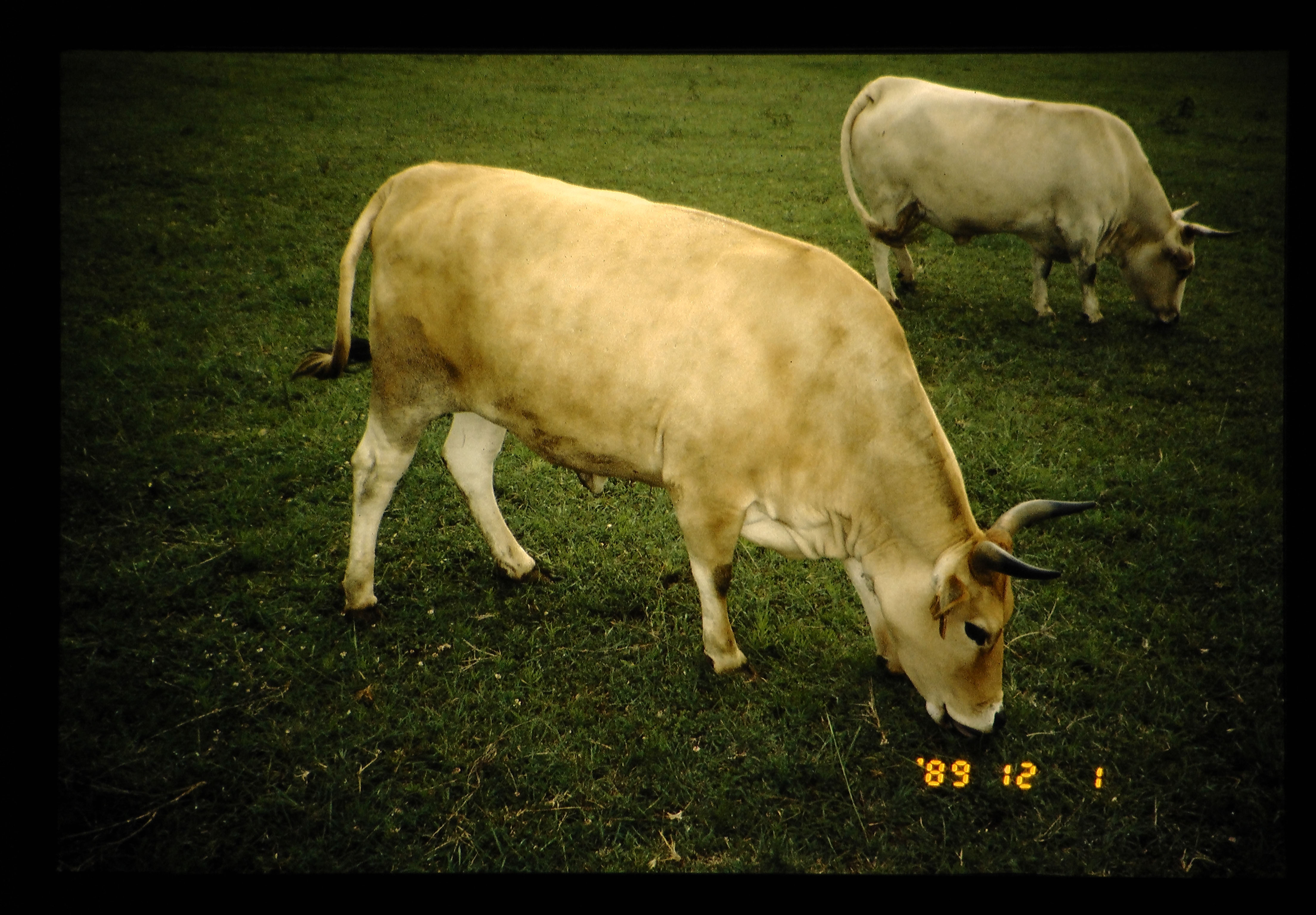 ガンビアから導入した、ンダマ種の雄と雌。背に肩峯(ハンプ)が無いトリパノトレラント。体型は小さい。