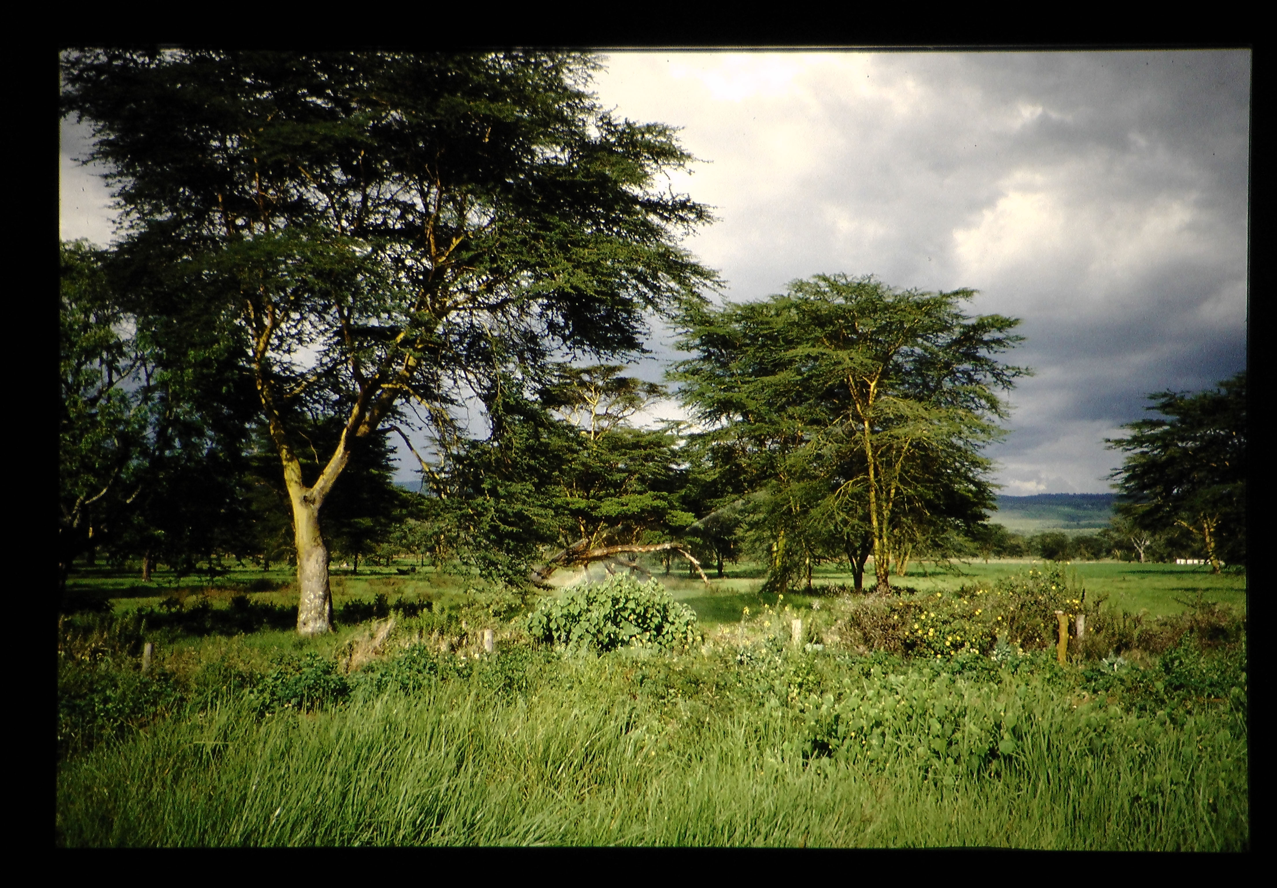ナクル湖へ行く途中でみられた、改良草地。給水にスプリンクラーを使用していた。政府の実習、実験農場のことであった。