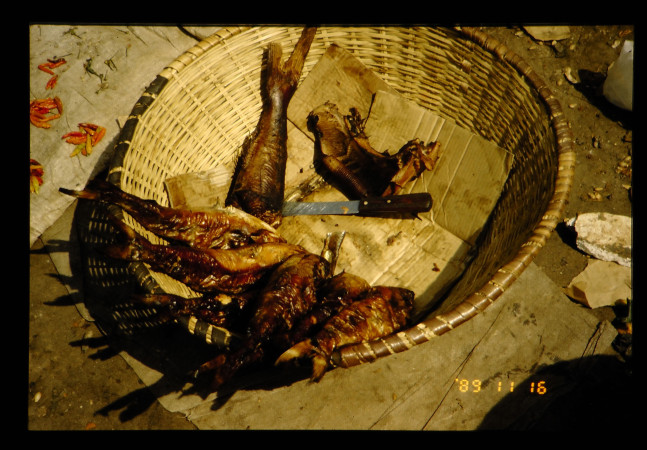 ガンビアの首都バンジュールのマーケット。食料、衣料類、その他を販売している。魚のクンセイ、枕型のカボチャ等、興味はつきない。