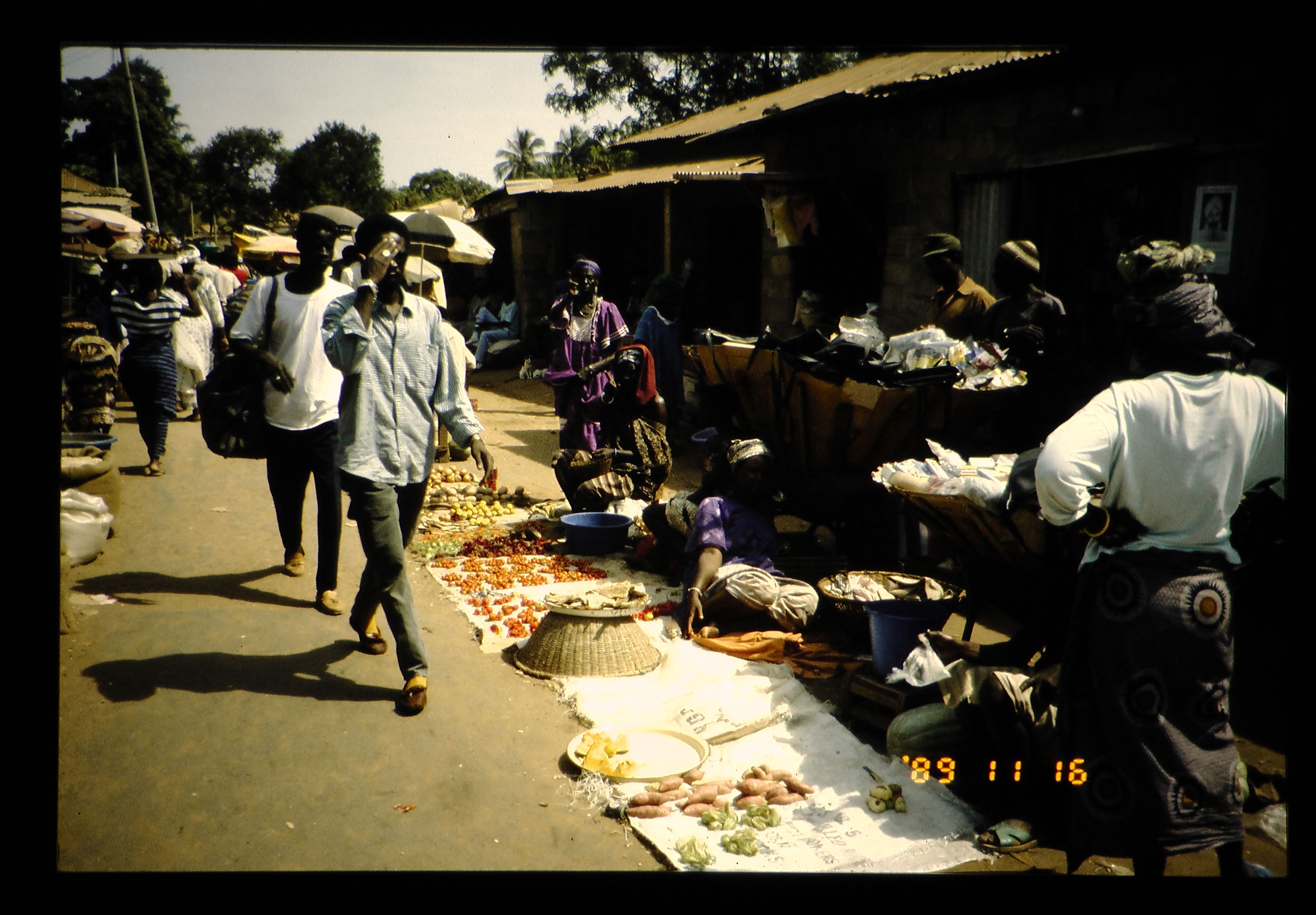 ガンビアの首都バンジュールのマーケット。食料、衣料類、その他を販売している。魚のクンセイ、枕型のカボチャ等、興味はつきない。