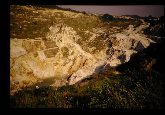 クアラルンプール郊外。スンガイベシにある世界一大きな露天掘りの錫鉱山、下の小屋で掘っている。登り坂のトラックと大きさを比較するとよい。