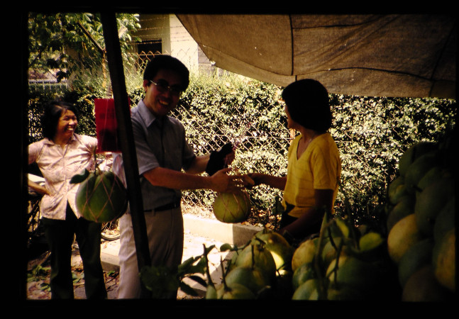 野菜・果樹の販売。手前に見えるのはポメロ。