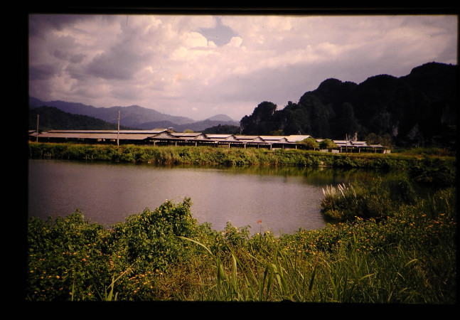 豚房から出る汚水は錫鉱山跡地の溜池に流す。池では淡水魚を養殖している。