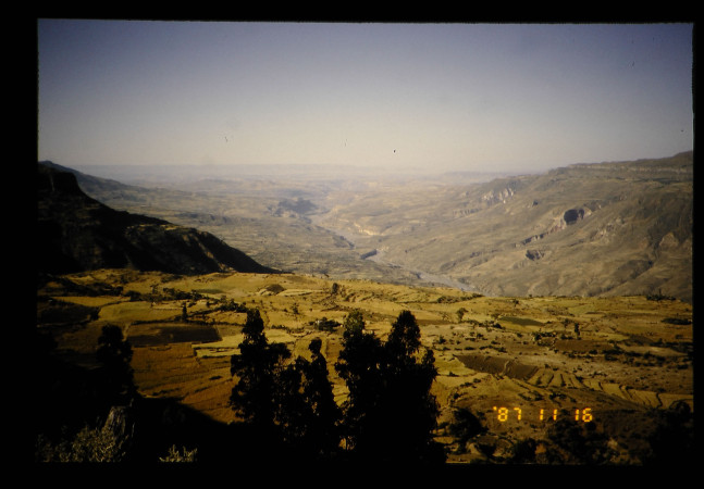 エチオピアの大地を裂く大地溝帯、段丘にも村落があり農業を営んでいる。