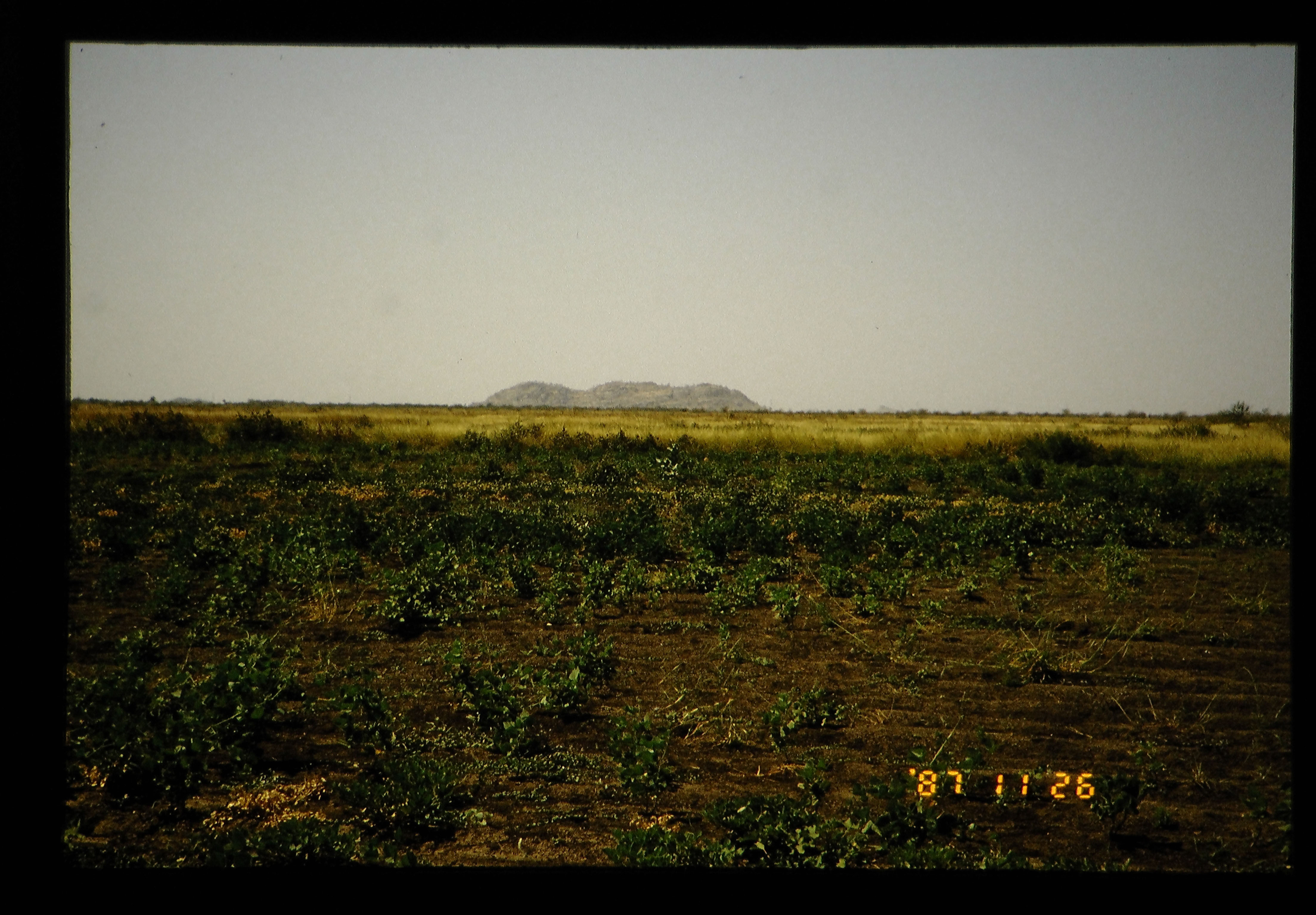 自動車で三時間走っても、ワイドメダニを中心としたゲジラ地帯は、標高が1mも変わらない平らなところである。その中でポツンと岩の丘が見えた。