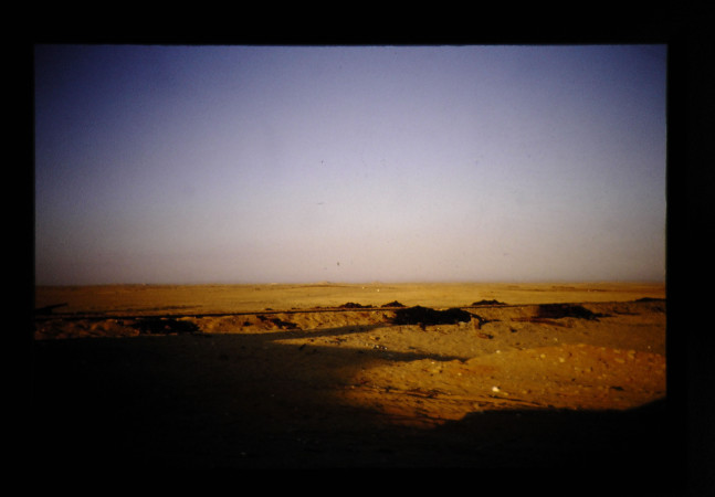 砂漠の風景、カイロ近郊は年間雨量が100mm以下と、ほとんど降雨がなく、植生も貧弱である。
