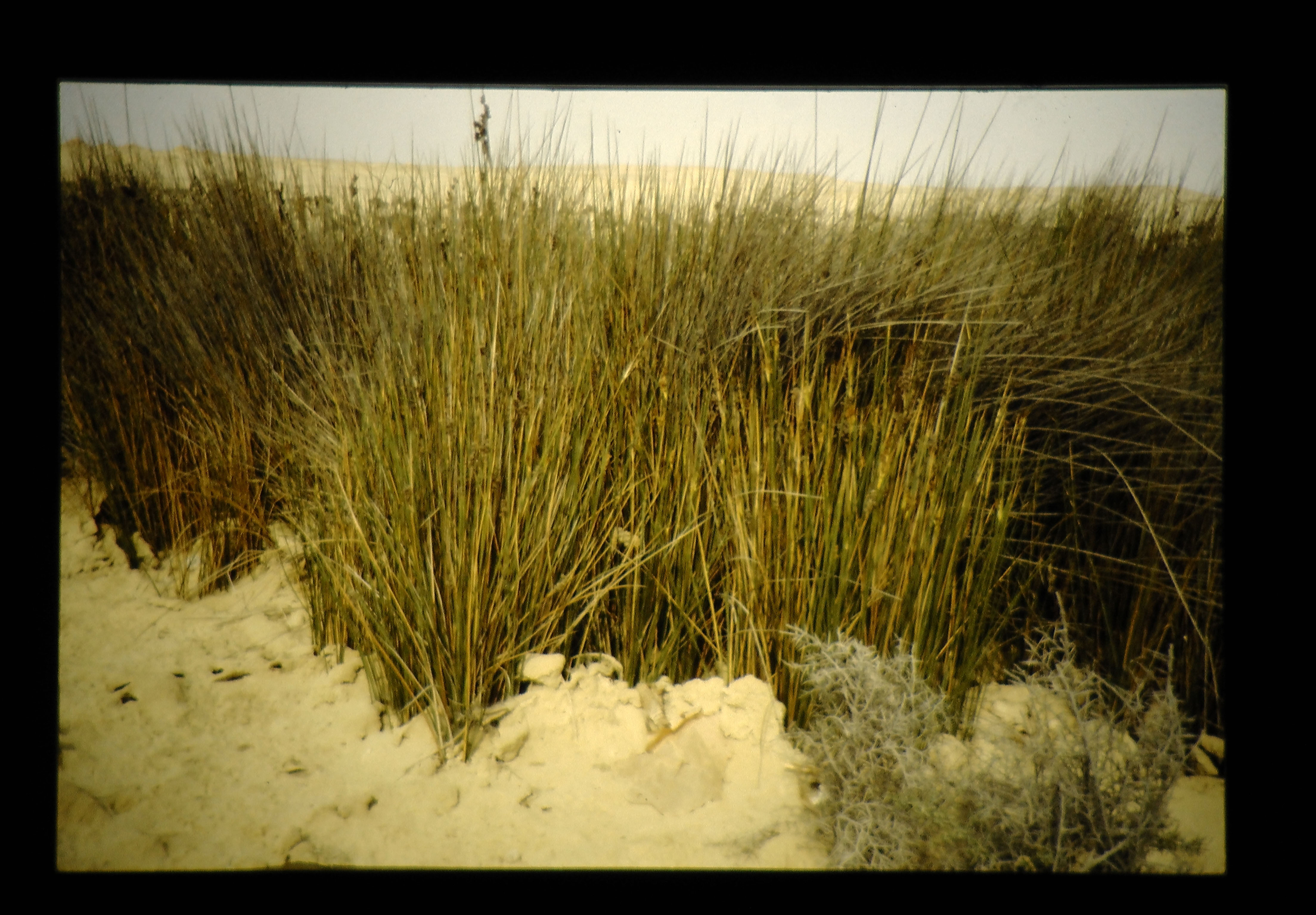 砂漠に生える植物。乾期に強く、動物の食害にも強い機能を備えている。イ草のようであるが先端は固く鋭いために、動物が食べることは困難だと思われた。