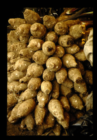 タロ(ダロ)、NO.8は見聞した中で最大の種で、フィジー本島以外の島から持ってきたもの、他は市場で売られている状態。