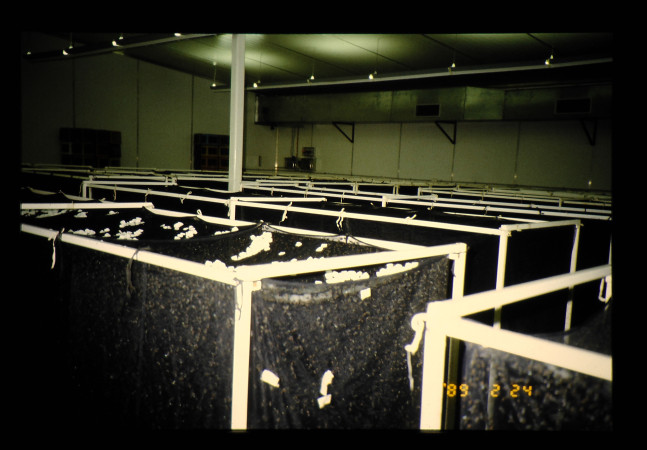 スクリューワームフライユニット(CSIRO)で、ハエを人工飼育している。ネットのゲイジと砂糖を餌に産卵させる、ネットの箱は一部屋に数十個有った。ウジの飼料は血粉と粉乳を水に溶いて、荒い綿のような繊維にしみこませて給与する。サナギはコバルト60を照射して不稔にして、自然界に放す。一週間に3000万匹の不稔ハエを生産している。
