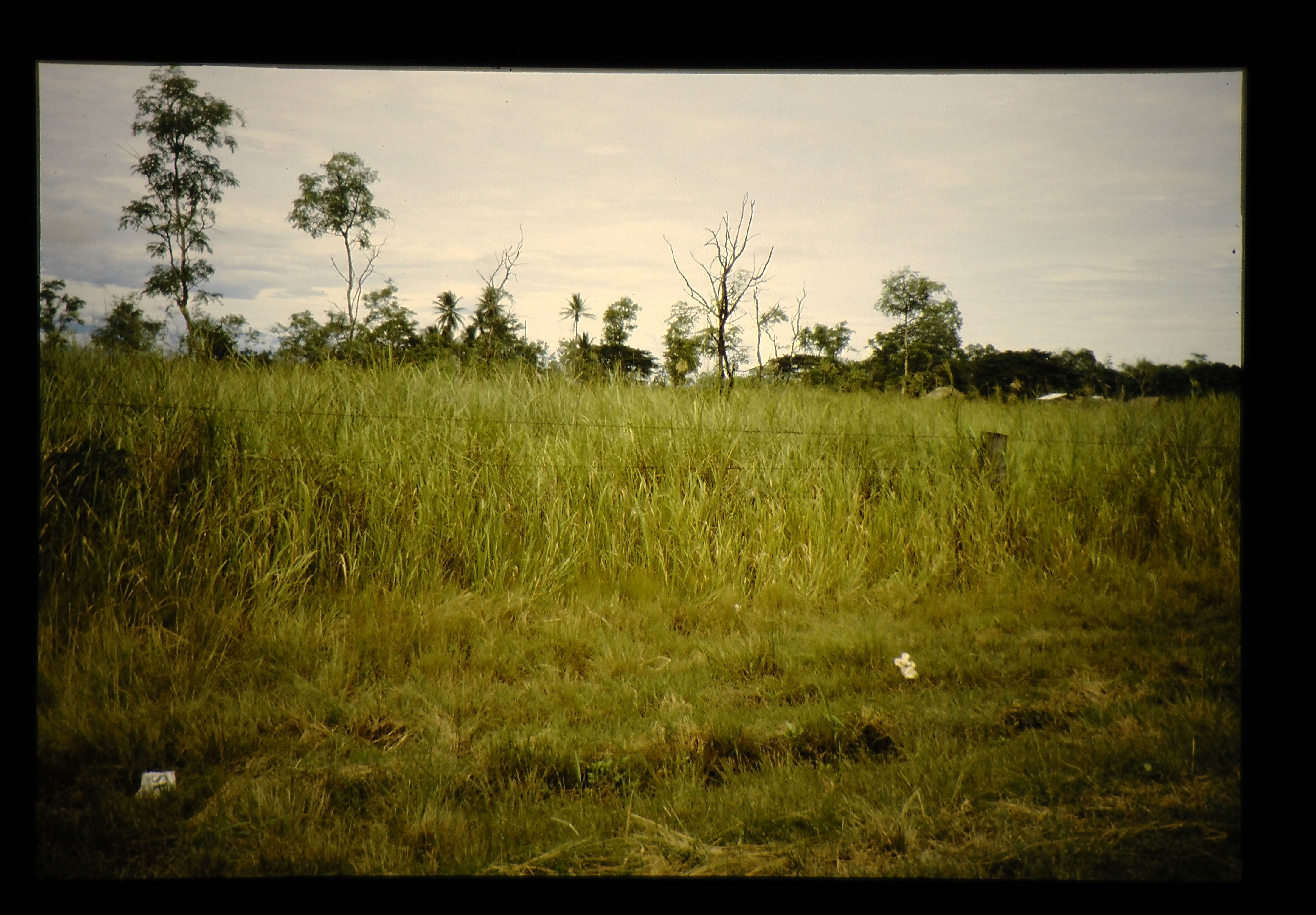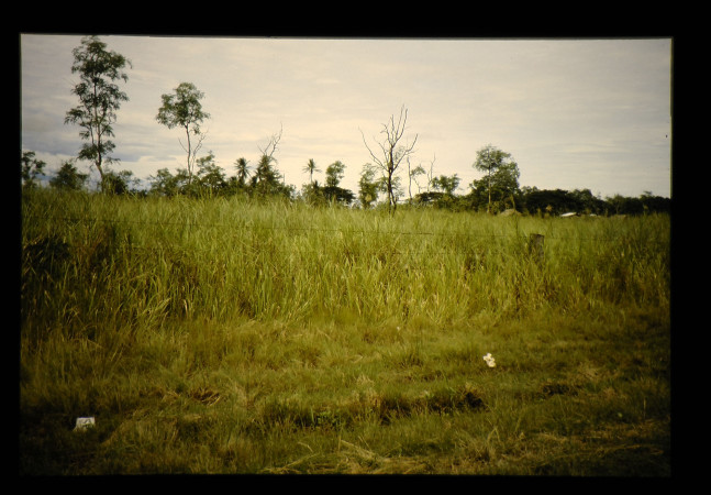 草の高さ1.5~2.0mの禾本科の野草の生える地帯が多い。これはかつて、何度も火入れをしたところといわれる。インペラータシリンドリカ(オオチガヤ)の草地。ラエ近郊。