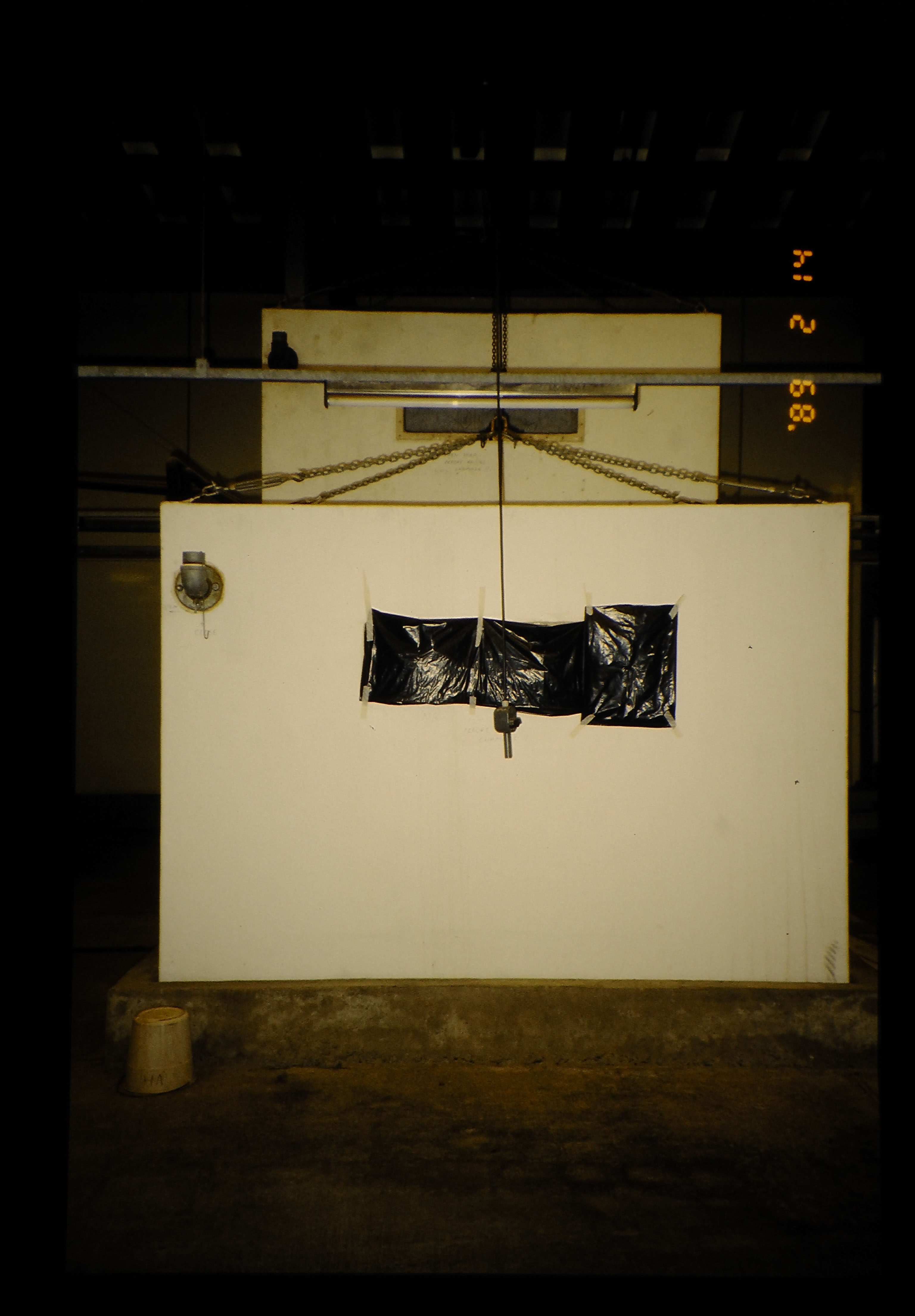 簡単な呼吸試験装置。チャンパーを牛にかぶせ、下を水でシールして機密にし、チャンバーの内外のO2とCO2の濃度差を測定して、消費エネルギー量を算出する。
