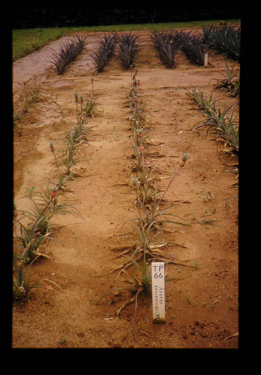 パインアップルについては、収集した品種・系統の諸形質を解析し、従来のカイエン、クィーン、レッドスパニッシュの3群に加えて、ブランコ、アマレロ、その他として台湾交配系統の6群に分類した。この研究は品種の系統関係の解明や交配組合せの選定に有益な知見を与えている。さらに、植物調節剤利用による増殖効率の向上、栄養系の組織培養による長期保存などの技術を開発している。最近では生食用優良品種の選定が重要課題となり、クィーン群、ブランコ群に有望な品種が見出されている。また、鑑賞用として有望な系統も見出されており、特性調査が進められている。このほか前述のギニアグラスのアポミクシス育種法の研究についても実施中である。
