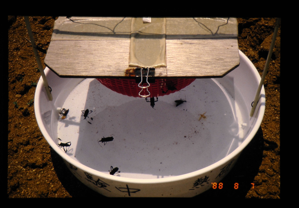 雄成虫を併置した水盤トラップによるアシビロヘリカメムシおよび卵寄生蜂の捕獲 = Capture Of The Bug And The Perasitoid By Water-pen Trap Mith Male Adults Of The Bug