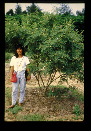 「ギンネム」 ギンネムは多年性の喬木であり、放置すると数メートルの高さになる。しかし、初期生育が緩慢であり、十分な大きさになるまで草地を牛から隔離する必要がある事、ギンネムキジラミで冬期に葉身が食害される事が欠点である。