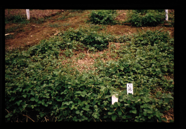 「刈取り後、約半月目のNOTONIA WIGHTII」 刈取り後の再生力は、NOTONIA WIGHTIIやCENTROCEMA属の品種系統のものが優れている。