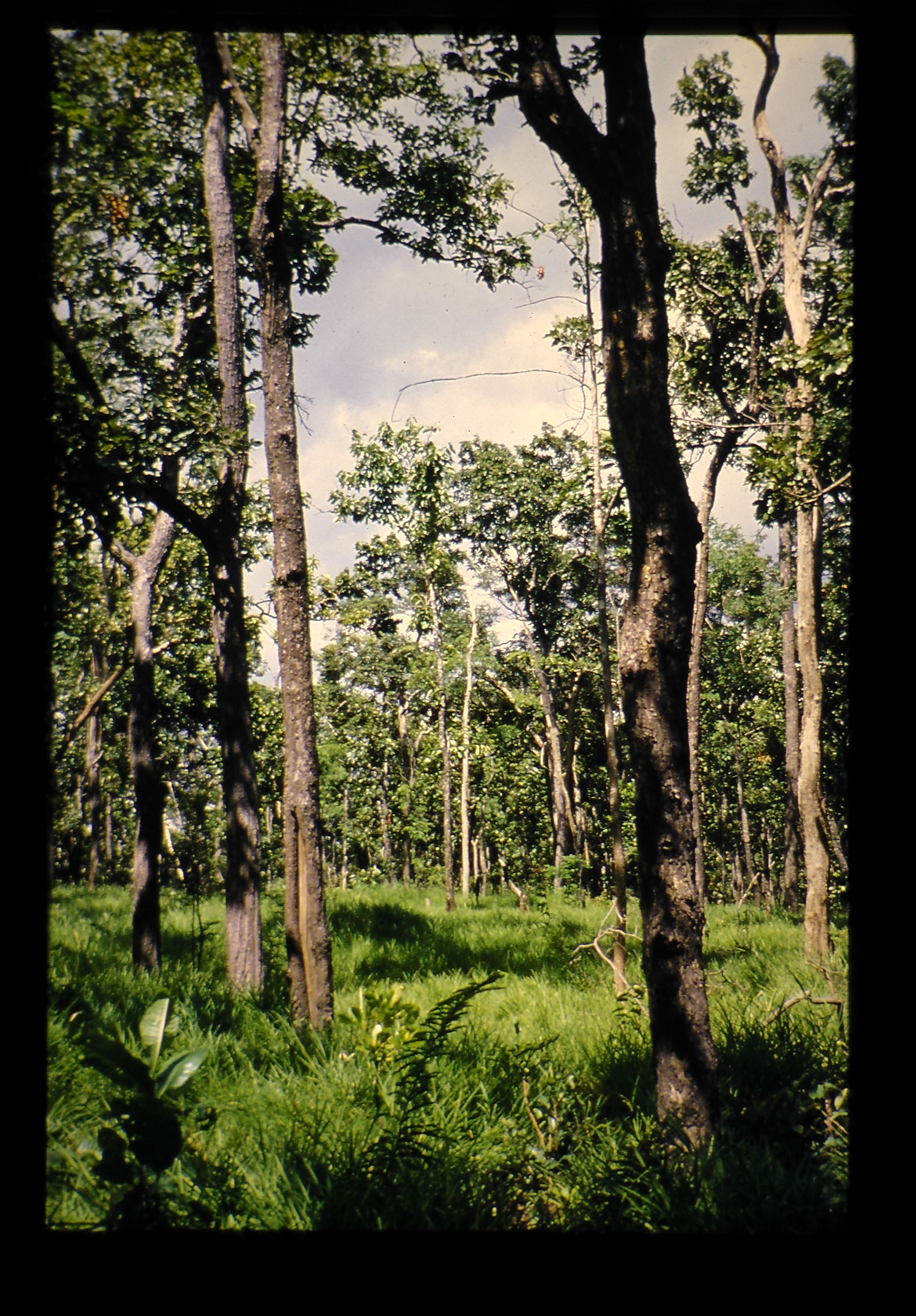 乾期が半年近くあるタイの乾燥フタバガキ林。常緑・落葉混交林とほぼ同一の環境条件にある。乾期には地表火が頻繁に発生するので火災との関係も有り。