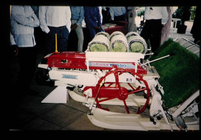 マレイシアで試験的に導入されている田植機。
