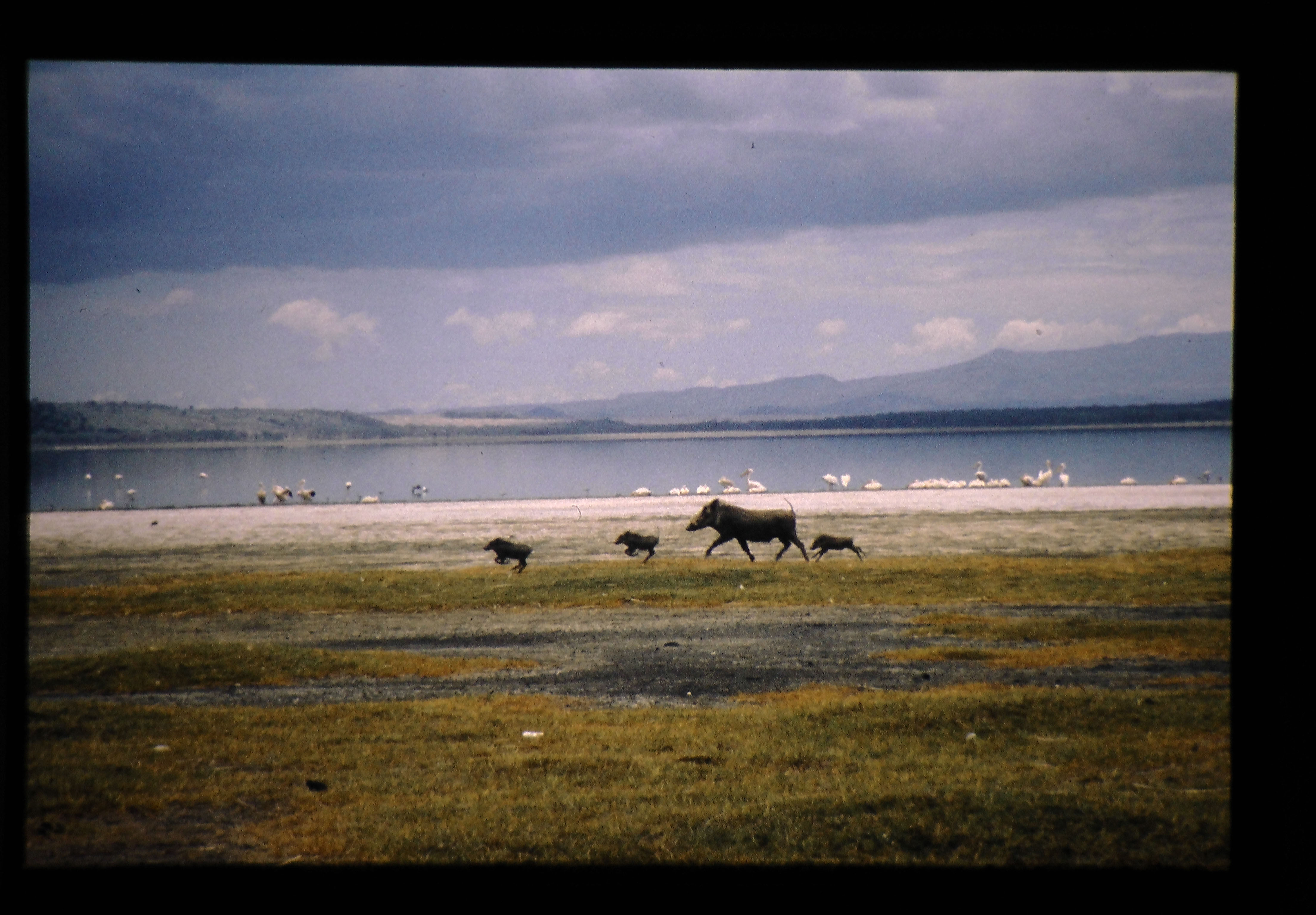 ケニヤの自然公園には貴重な動物が保護されている。スライドはイボイノシシである。イボイノシシは歯の数や、日中に活動すること、子供に縞模様がないなど、他のイノシシ科と異なる特徴をもつ。