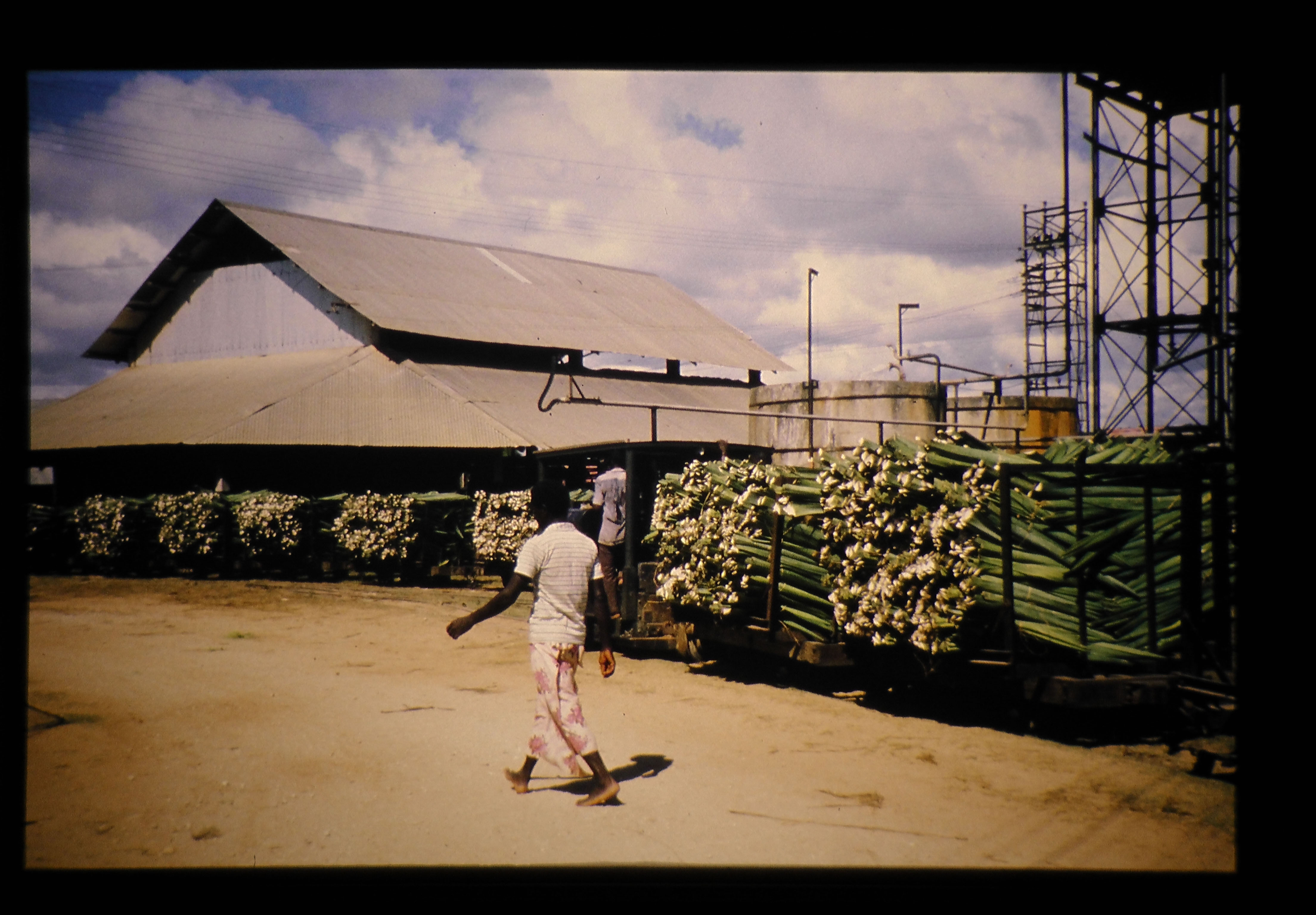 ケニアのインド洋岸のモンバサではサイザル麻が広範囲に栽培されており、サイザル繊維を取り出す工場があった。残渣をゼビュー牛を使って運んでいた。