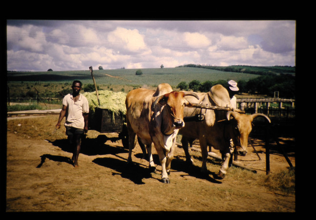 ケニアのインド洋岸のモンバサではサイザル麻が広範囲に栽培されており、サイザル繊維を取り出す工場があった。残渣をゼビュー牛を使って運んでいた。