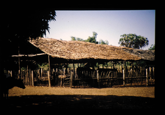 ケニアのインド洋岸のモンバサにおける、小規模な酪農家の状況。飼育品種は在来種に西洋品種を交配した交雑種が多い。牛舎の屋根はココナツの葉で作られていた。