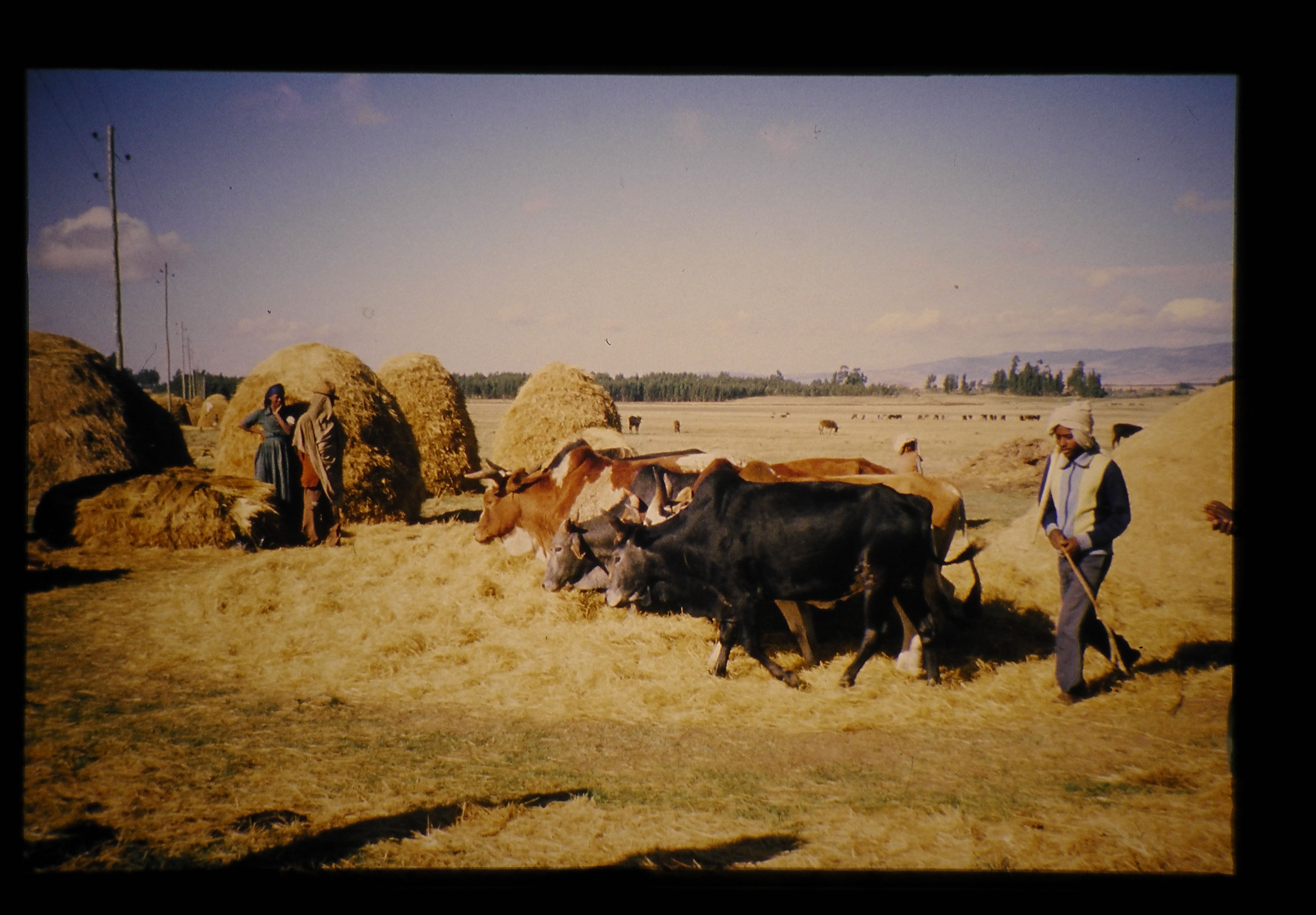 エチオピアで牛の果たす役割は極めて大きい。主食であるインジェラの原料のテフを収穫するために牛の力を利用した耕起を行なっている。