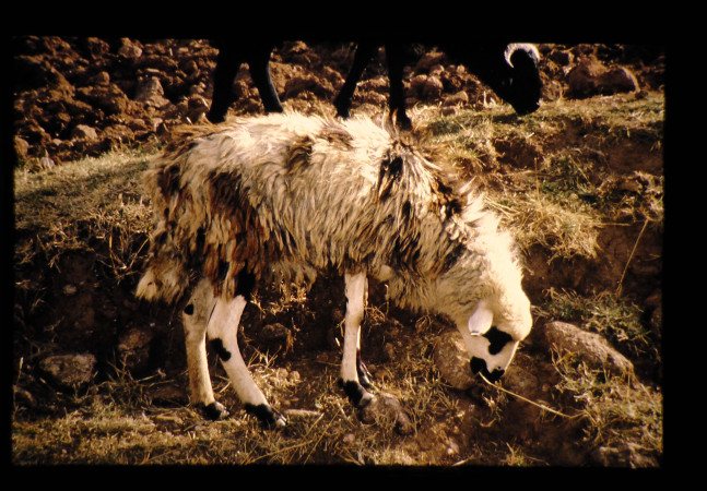 エチオピアには約2400万頭の羊がおり、11の品種がそれぞれの地域に分布している。スライドはエチオピアの雑種羊で、雑多な毛色をしている。