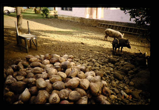 農家の庭。ココナッツの実と豚はどこの家でも見かける。
