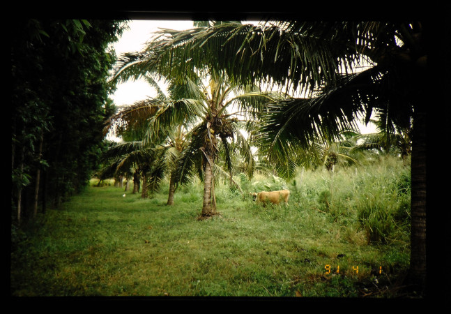 農家の畑。植林された木やココナッツが見える。