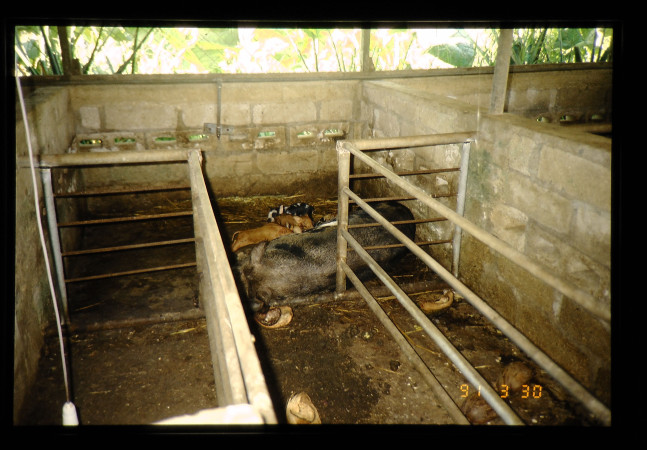 豚舎で飼われている繁殖豚。