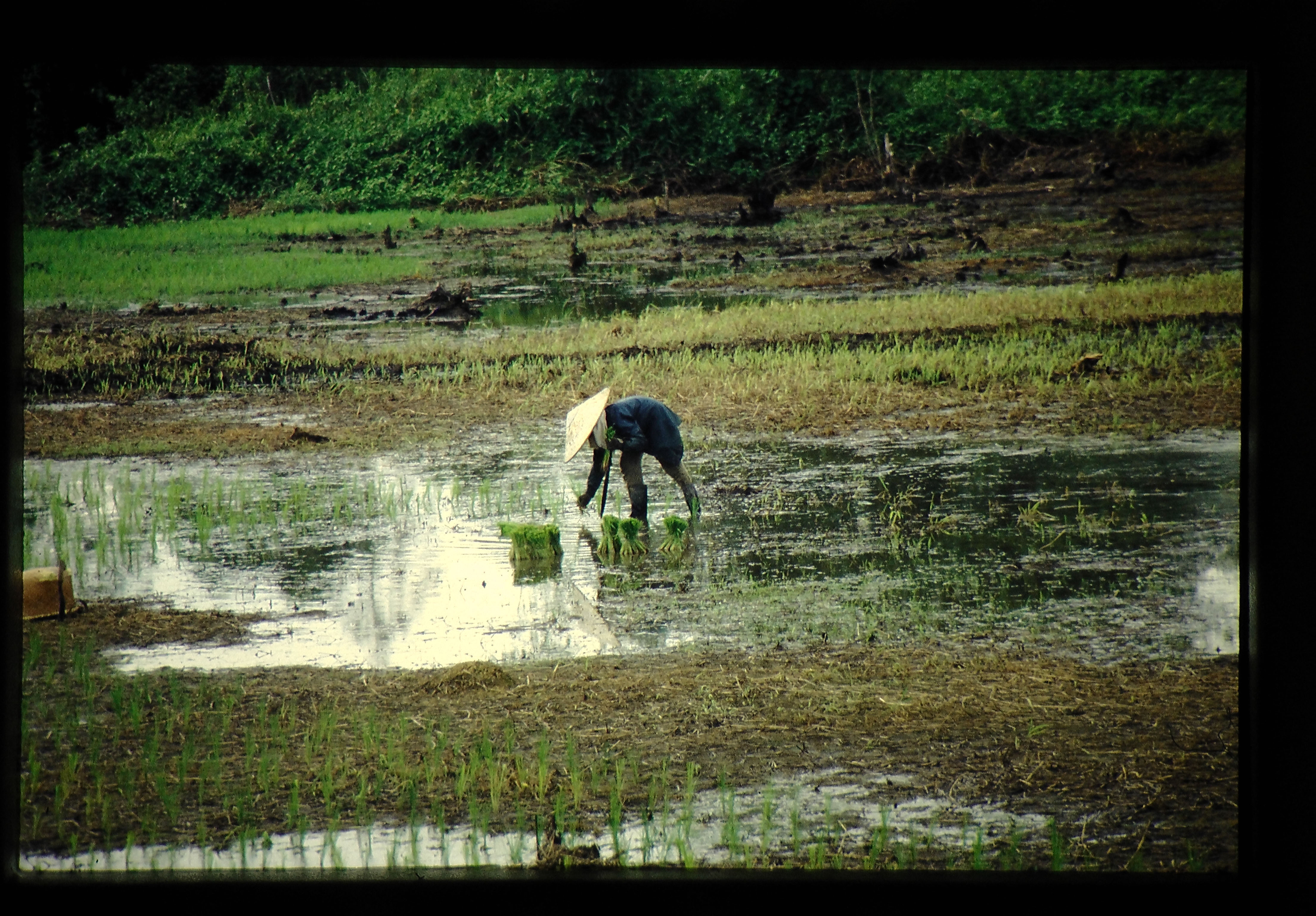 1970年代の後半にマレイシア・ムダ地区では、直播栽培が急速に普及し、1988年にはオフシーズン作で水稲作付面積の80%が直播栽培となった。これまでに熱帯農業研究センターがマレイシアで推進してきた水稲二期作技術体系は移植栽培を前提とするものであったため、その基礎からすなわち直播栽培を前提とした技術体系の構築を図る必要が生じた。また、直播栽培は安価な主食の供給を推進する開発途上国政府の政策とあいまって、今後の熱帯における水稲二期作の主要な栽培技術となることが予測された。しかしながら、基盤整備が未だ十分でない熱帯の開発途上国における水稲直播栽培は今までの移植栽培とは異なった多くの熱帯特有の問題をかかえており、例えば雑草防除技術、効率的水管理技術、直播用水稲品種の特性の解明、機械化整地作業技術の確立など、緊急に解決を要する諸問題が山積している。そこで、熱研センターは1988年より5カ年間の予定で熱帯農業プロジェクト研究を、マレイシア・ムダ農業開発公団と共同で開始した。
