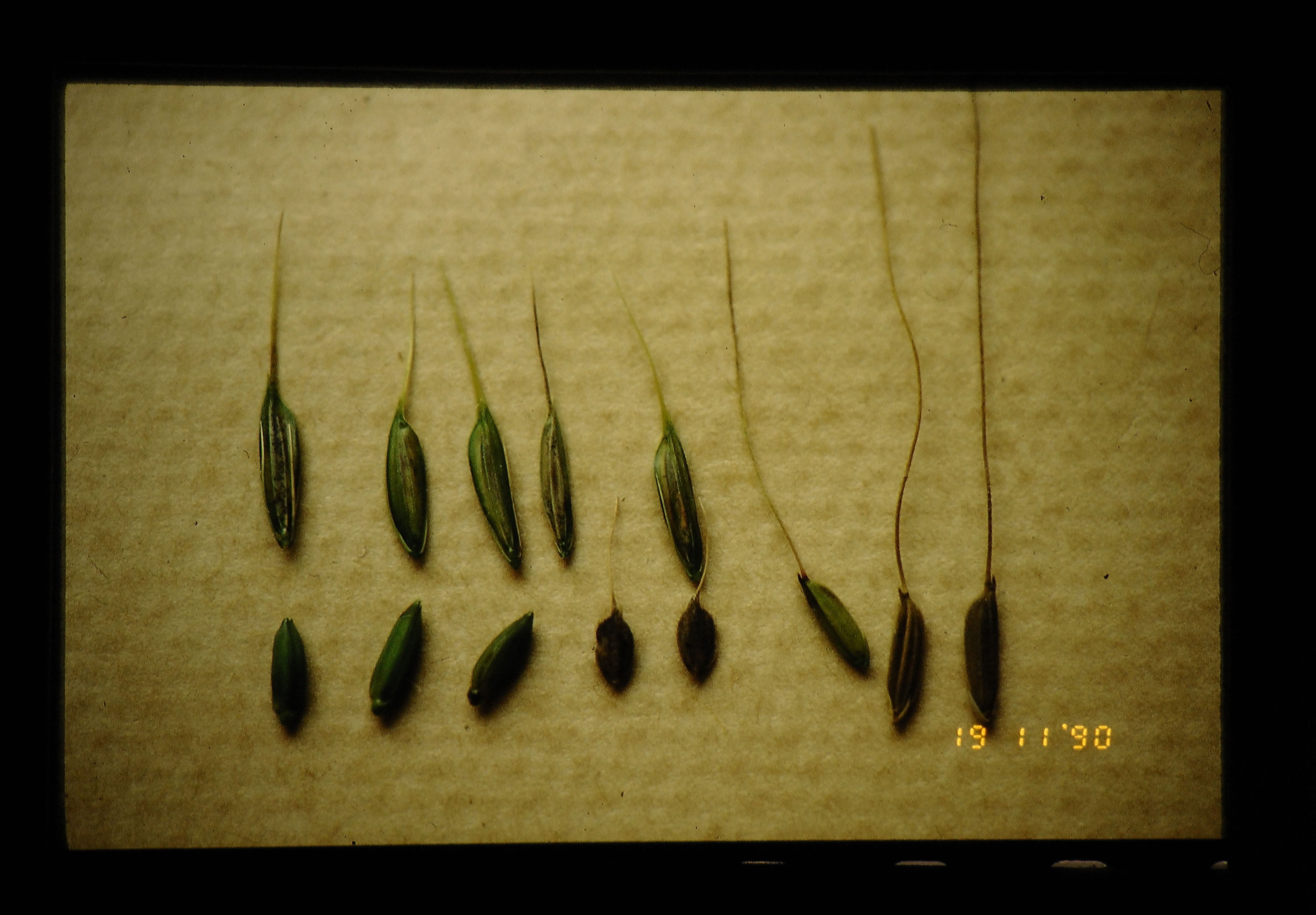The Differences Between 4 Species Of Wild Rice O.Rufipogon (rigth 2) O.Officinalis (center 2) O.Ridleyi (upper 5) O.Meyeriana (lower 3) And O.Spontania (crossed O.Rufipogon And Cultivate Variety,1)